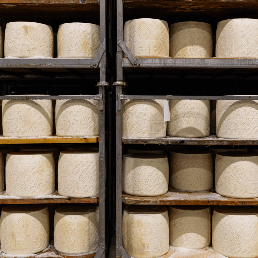 Por último, las piezas se colocan en la sala de maduración de quesos, donde, a lo largo de meses, el Pecorino Romano desarrolla su sabor, aroma y textura característicos.
