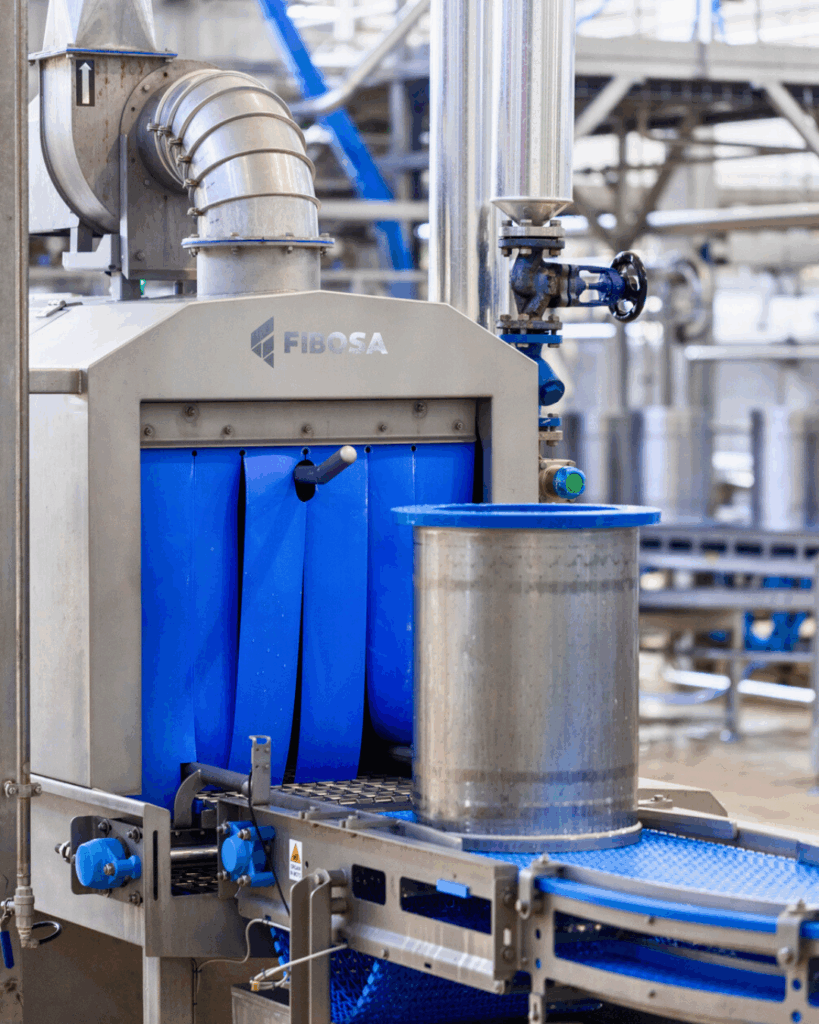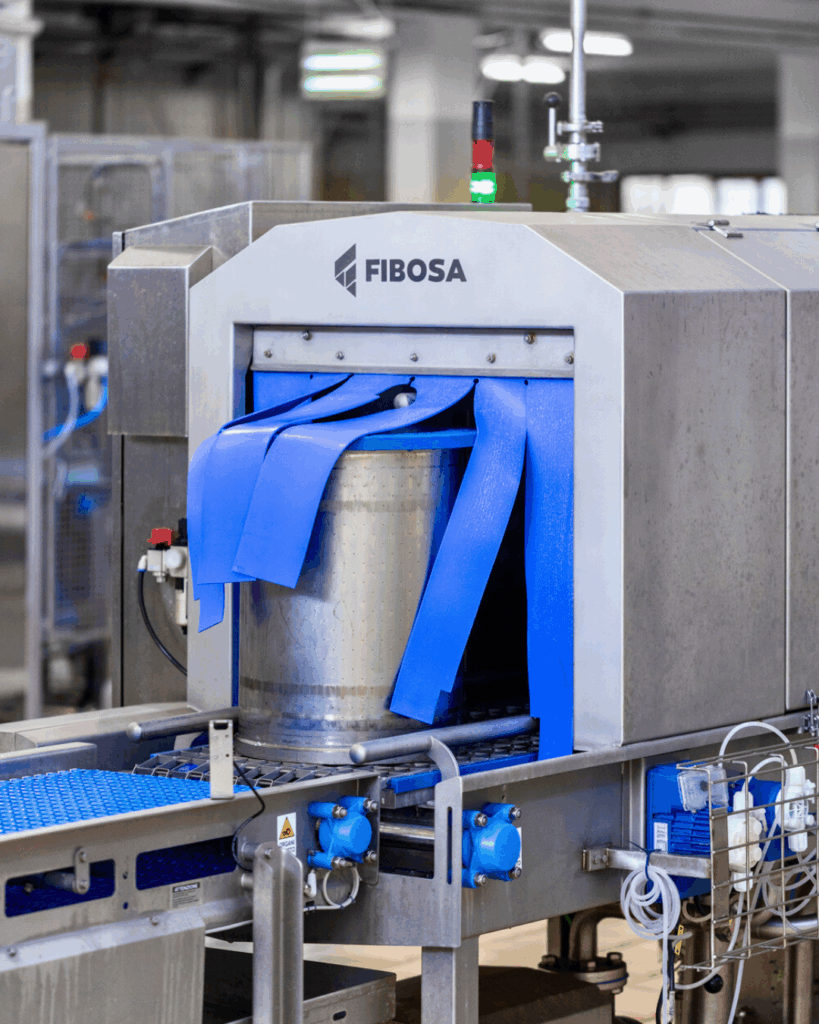 Una de las principales ventajas del túnel de lavado de FIBOSA es el aprovechamiento del agua utilizada en la fase de aclarado —previamente filtrada— para llevar a cabo el prelavado del siguiente ciclo. Esta recirculación inteligente permite reducir el consumo de agua, mejorar la eficiencia del sistema y optimizar los recursos en planta.